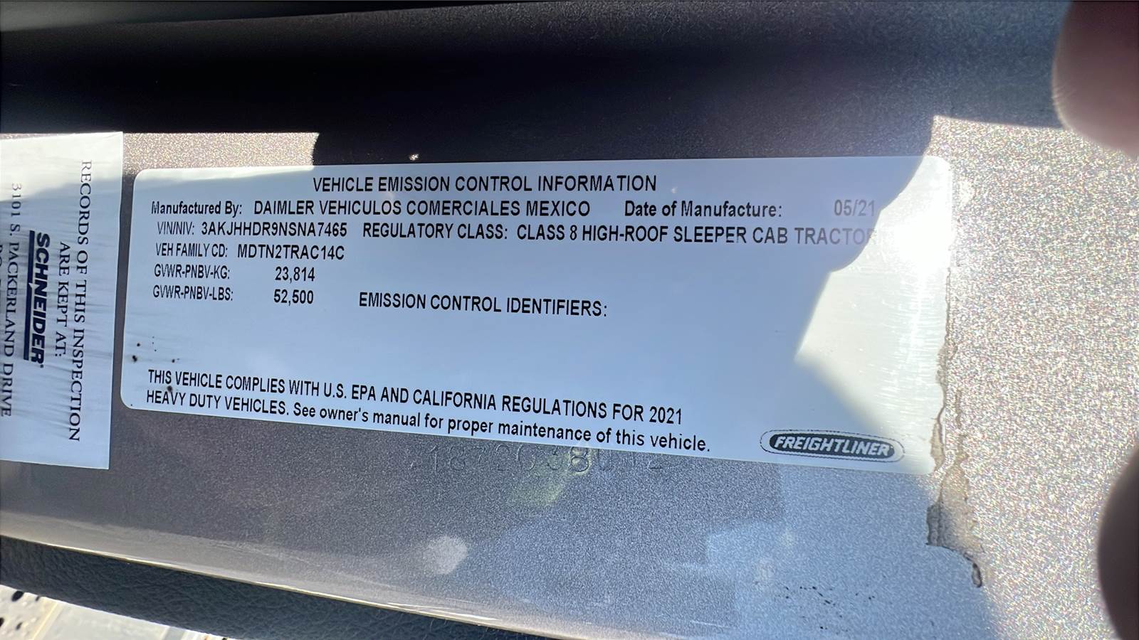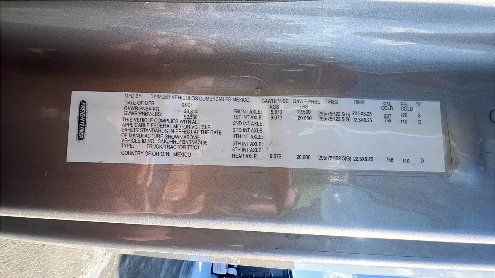 Serial no.3AKJHHDR9NSNA7465